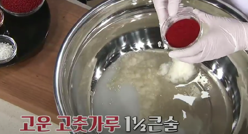 고운 고춧가루를 너무 많이 넣으면 텁텁한 맛이 나기 때문에 1큰술 반 넣어주시고
